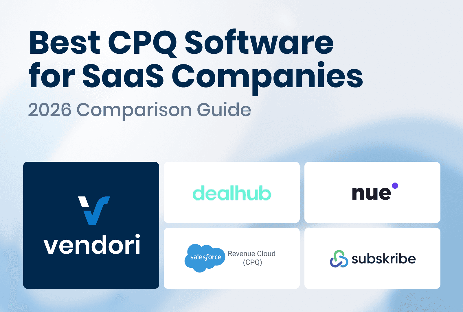 In 2026, the best CPQ software for SaaS depends on your architecture and pricing model. Modern SaaS-focused platforms like Vendori and Subskribe are often evaluated for subscription and hybrid pricing environments. Salesforce Revenue Cloud is commonly selected by enterprise organizations deeply invested in Salesforce. Mid-market SaaS companies frequently evaluate DealHub and Nue depending on Salesforce dependency.